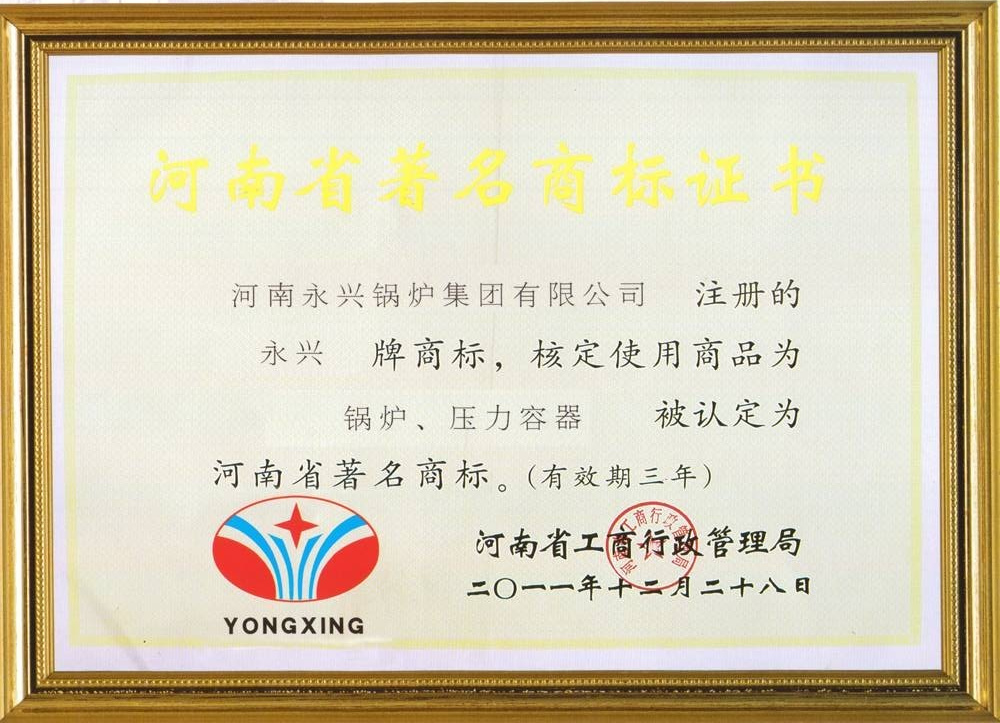 河南省著名商標證書