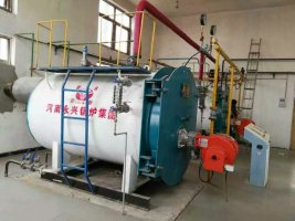 WNS系列臥式燃油氣蒸汽鍋爐為內燃三回程火管蒸汽鍋爐。采用偏置爐膽濕背式結構。高溫煙氣依次;中刷第二及第三回程煙管,然后由后煙室經煙囪排入大氣。鍋爐裝有活動的前后煙箱蓋,使鍋爐檢修方便。鍋爐配置技術性能良好燃燒器,采用了燃燒自動比例調節,給水自動調節,程序啟停,全自動運行等先進技術,并具有高低水位報警和極低水位、超高汽壓、熄火等自動保護功能。該型鍋爐具有結構緊湊、安全可靠、操作簡便、安裝迅速、污染少、噪音低、效率高等特點。
